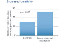 Osobe koje su naučile Transcendentalnu Meditaciju, pokazuju povećanu kreativnost u poređenju sa kontrolnim ispitanicima, mereno višim nivoom slikovne originalnosti izmerene pet meseci nakon početka praktikovanja. Takođe, pokazale su i porast kreativnosti meren višim nivoima slikovne fleksibilnosti i lakoće verbalnog izražavanja (nije prikazano grafikonom).